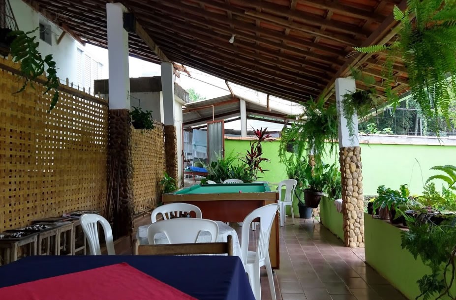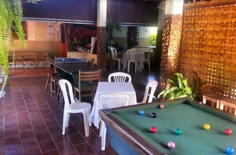 Há uma varanda compartilhada com churrasqueira, fogão a gás, pia de cozinha, freezer e utensílios de cozinha à disposição dos turistas. Possui varanda de jogos liberados aos hóspedes com sinuca, ping-pong, dama, cartas etc.